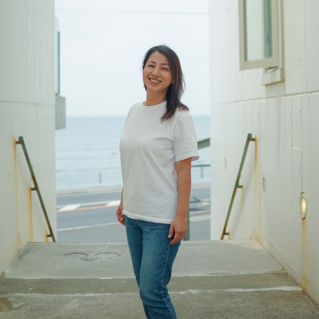 前面は無地で、背面の襟下のみにプリントしたミニマルでシンプルなTシャツ。